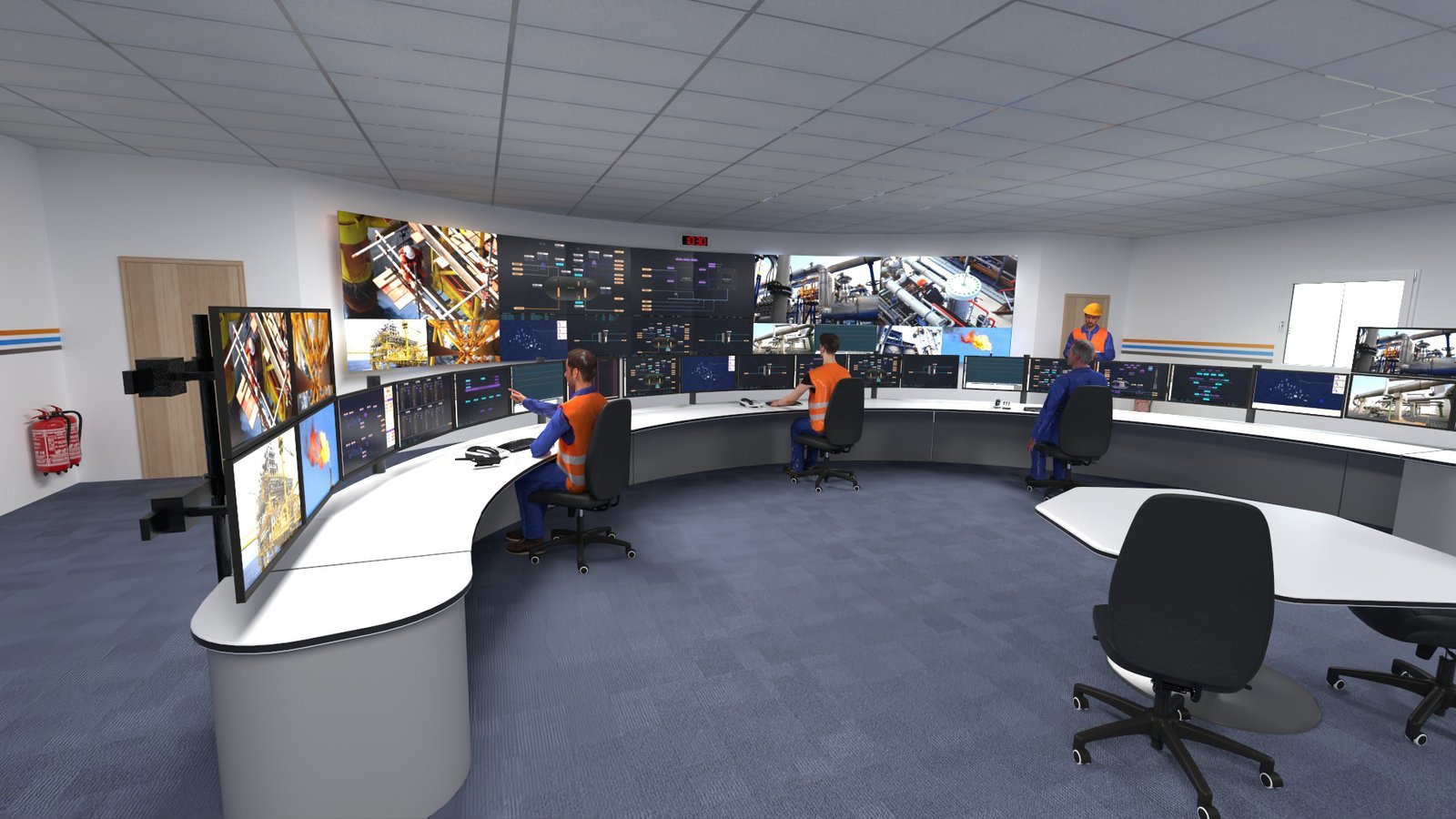 Command the Present. Control the Future. Live sensor data visualization and decision support tools Surveillance integration (CCTV, perimeter monitoring) Operator-friendly interfaces and ergonomic workstations Integration with SCADA, ERP, and safety systems Designed for continuous operation, these environments give control to your fingertips.